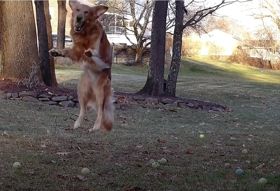 Archie loves being outside so any shots of him running, playing with balls, relaxing, digging, etc